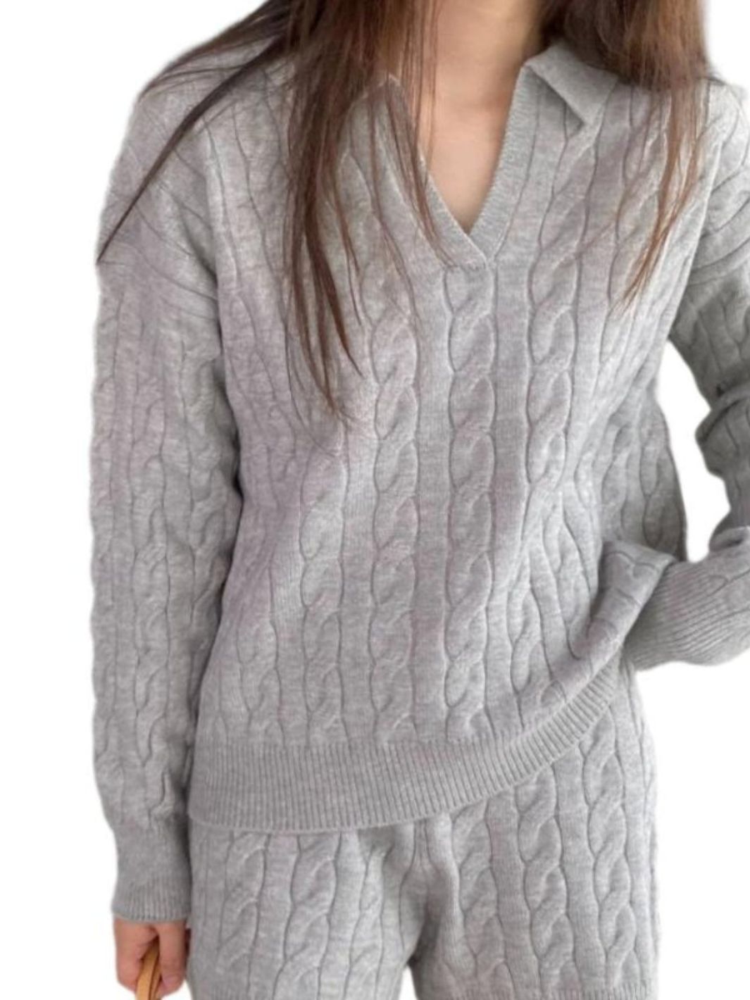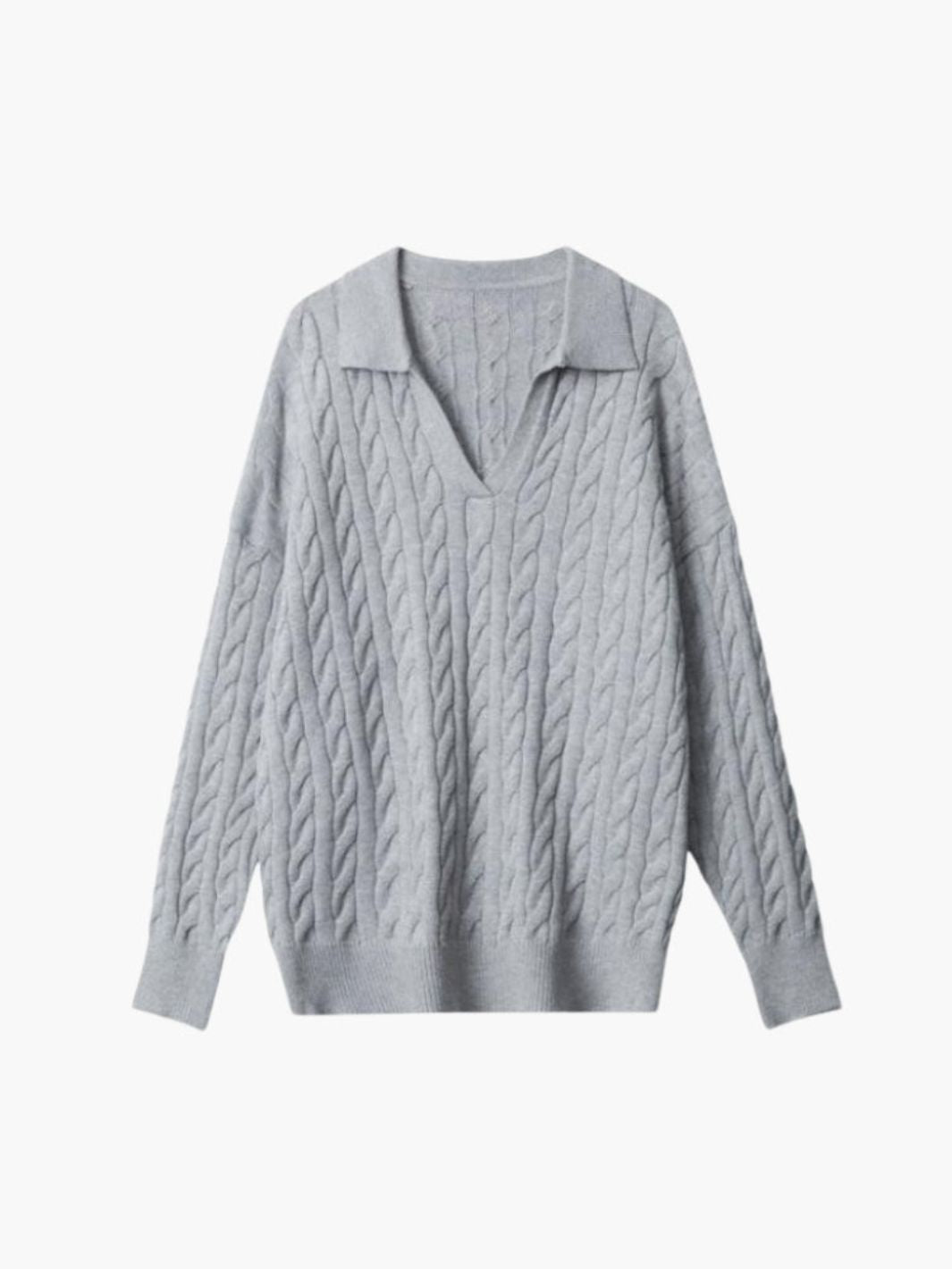 Damski sweter z dekoltem w szpic i długim rękawem. Prosty fason z kołnierzem sprawia, że nadaje się do codziennych i półformalnych stylizacji. Występuje w kilku klasycznych kolorach.