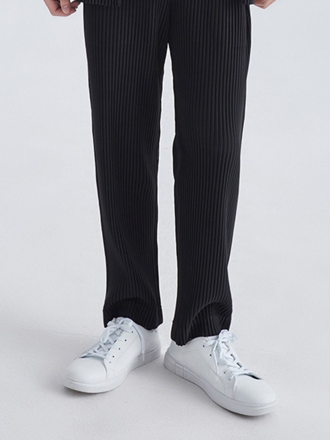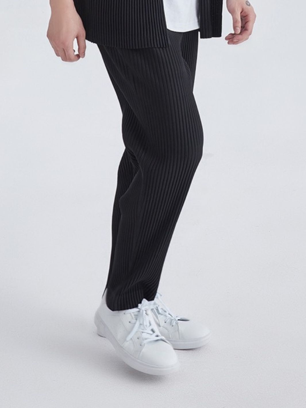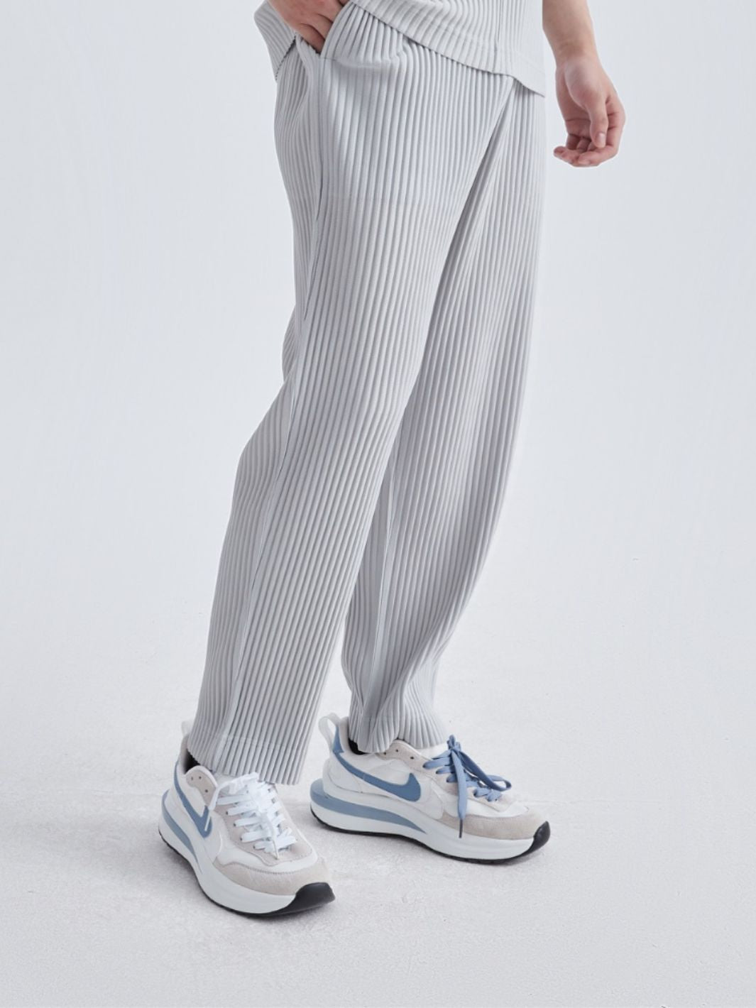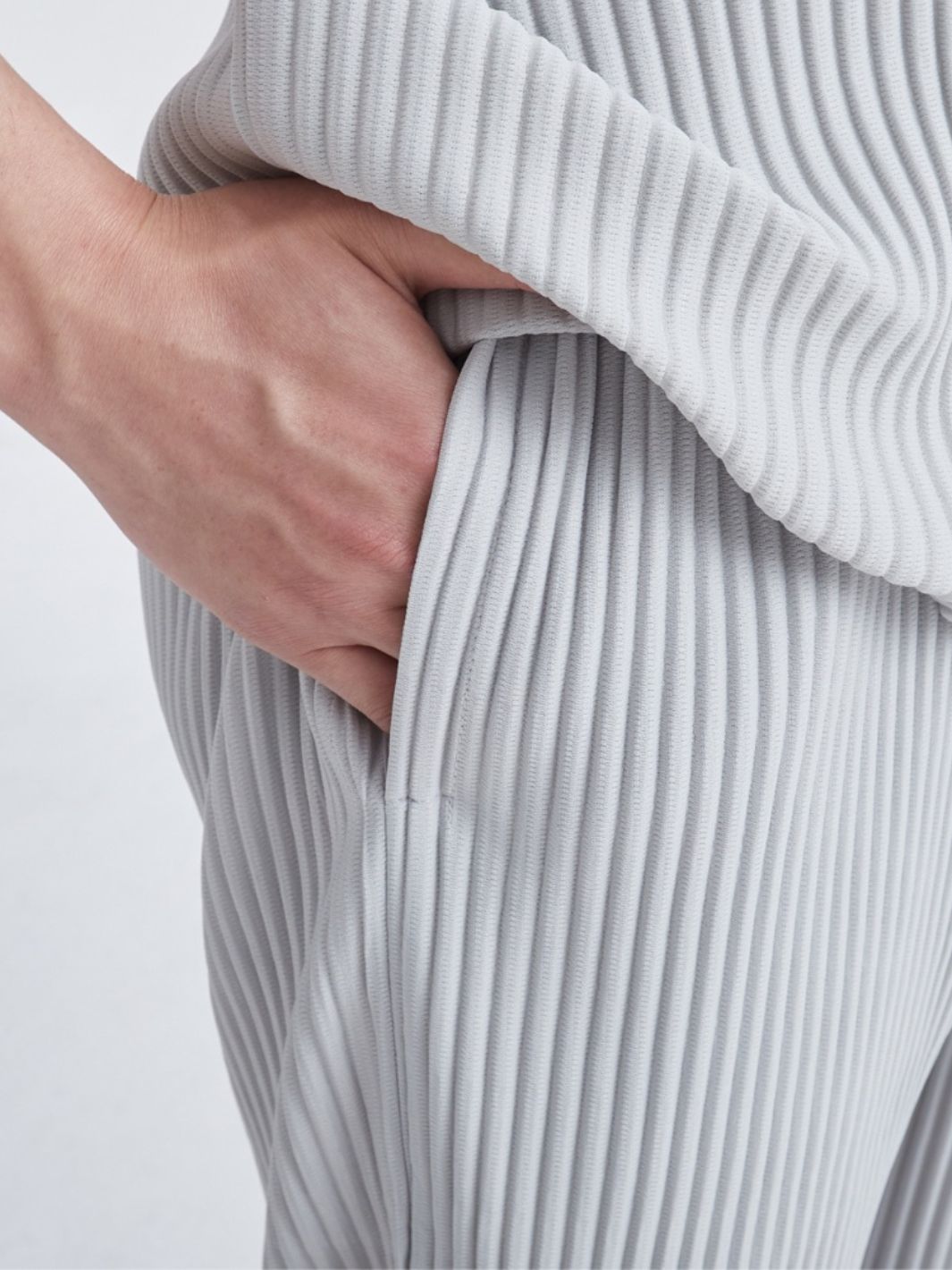 Spodnie o prążkowanej strukturze, które łączą nowoczesny styl z codzienną funkcjonalnością. Dzięki starannemu wykończeniu i uniwersalnemu krojowi sprawdzą się zarówno w codziennych, jak i bardziej eleganckich stylizacjach.